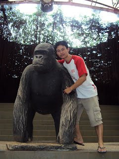 Setelah mondar mandir kesana kemari akhirnya kamipun menemukan gerbang khusus hewan primata kayak monyet, bukan kayak kami, he.., namun untuk masuk ternyata kami harus bayar lagi yaitu Rp. 7.500,-/orang, tp setelah masuk weeehhh ternyata bagus juga design arsitektur bangunannya, sehingga cukup puaslah dengan harga seprti itu. Didalam area tersebut kamipun mondar mandir kembali, dari mulai terowongan ampe seluruh area tersebut terlewati, hingga akhirnya kamipun lemas tak berdaya, karena capenya beradventure, hee..., walhasil kamipun makan dulu disebuah ruangan yang kosong untuk sekedar mengumpulkan energi yang telah hilang.