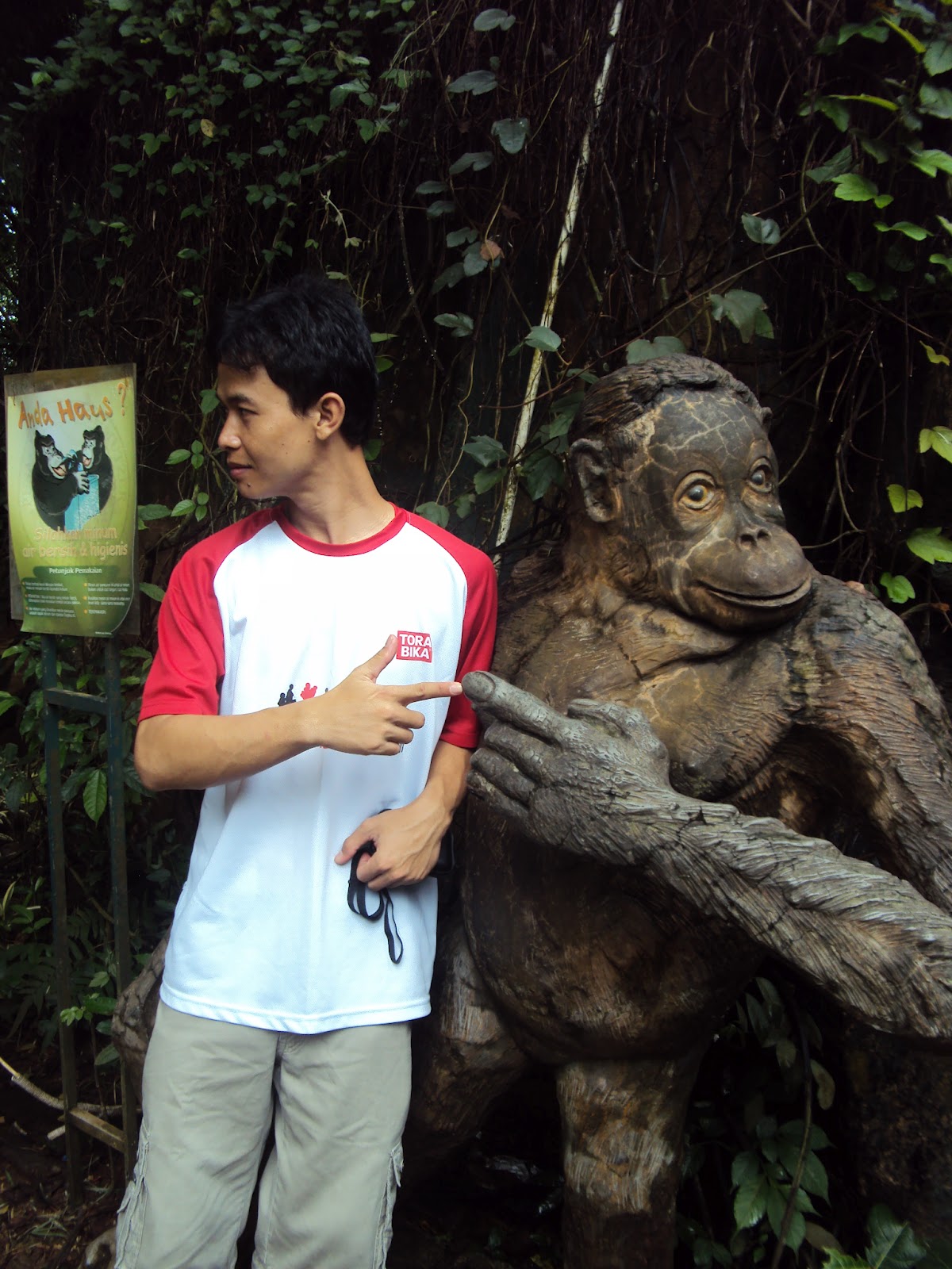Ringkasnya kami pun sampai di ragunan jakarta, dengan melalui pintu gerbang utama untuk membeli tiket masuk yaitu seharga Rp. 4.000,-/orang dewasa, klo utuk anak-anak klo tidak salah beda tarif lagi. Setelah kami masuk ke area ragunan tersebut yang pertama-tama jadi objek dokumentasi kami adalah patung gajah, sehingga dengan gaya cool abis (mati gaya, hee...) kami pun berphoto ria disana. Karena kami tiba disana cukup pagi, jadi suasananya masih sepi, gak terlalu banyak orang seliweran dan kondisinya masih adem ayem , dingin, perfect lah...